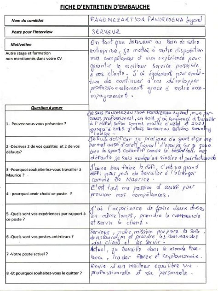 - Présenter l'entreprise et le poste.