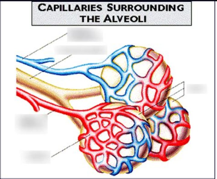 When we breathe, air enters our lungs and fills tiny air sacs called alveoli. Each air sac is surrounded by an extensive capillary bed, which is a network of tiny, thin blood vessels. In order for us to bring in oxygen and release carbon dioxide, the alveoli and capillaries must be properly aligned.