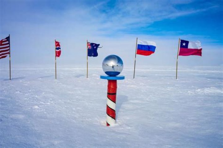 A geographical pole or geographic pole is either of the two points on Earth where its axis of rotation intersects its surface. The North Pole lies in the Arctic Ocean while the South Pole is in Antarctica.