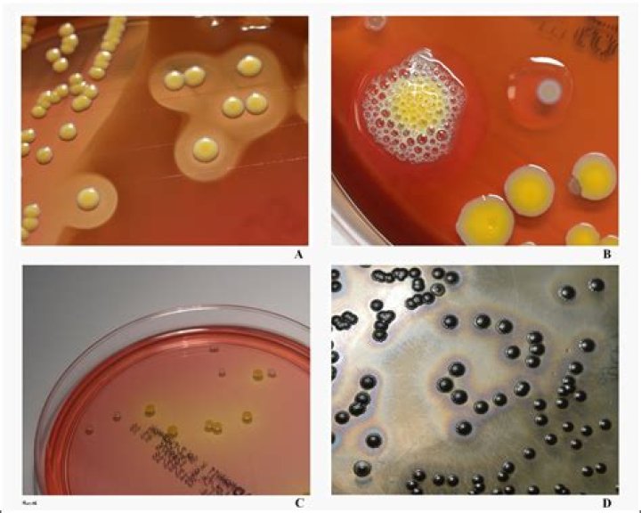 Most non-pathogenic staphylococci will not ferment mannitol. The Staphylococcus aureus ferments mannitol and turns the medium yellow. The Serratia marcescens does not grow because of the high salt content.