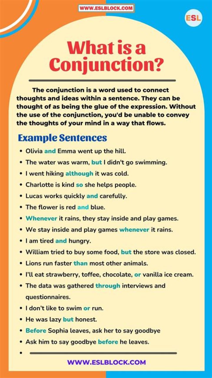 What are the 10 examples of conjunctions?