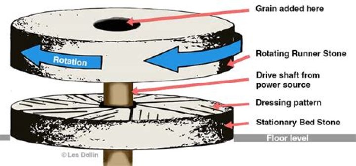 Millstones or mill stones are stones used in gristmills, for grinding wheat or other grains. They are sometimes referred to as grindstones or grinding stones. Millstones come in pairs: a convex stationary base known as the bedstone and a concave runner stone that rotates.