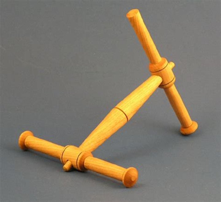 A niddy-noddy is a tool used to make skeins from yarn. It consists of a central bar, with crossbars at each end, offset from each other by 90°. The central bar is generally carved to make it easier to hold.